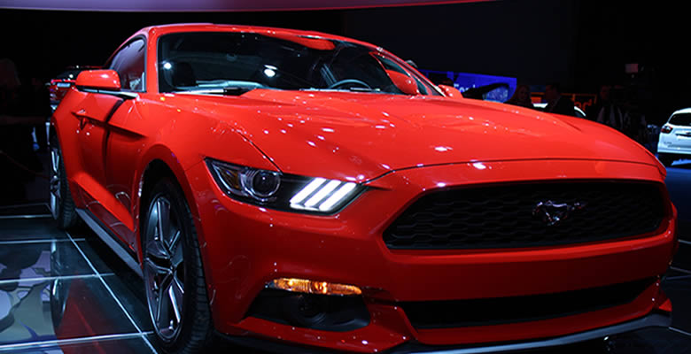 Desde 2015 hasta la actualidad: En su sexta versión el nuevo Mustang es más ancho, más bajo y más dinámico estéticamente que su antecesor. Dispone de varias motorizaciones, pero su principal novedad es un EcoBoost 4 cilindros de 2300 cc que entrega alrededor de 309 CV y 407 Nm de par. Además incorpora, por primera vez, una suspensión multibrazo en las ruedas traseras.