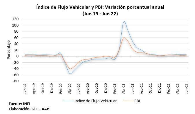 El Índice Nacional de Flujo Vehicular, que evalúa el tránsito de vehículos ligeros y pesados a través de los puntos de peajes de todo el país, registró un crecimiento de 5.1% al término de junio de 2022 en comparación con similar mes del año anterior, según información del Instituto Nacional de Estadística e Informática - INEI.