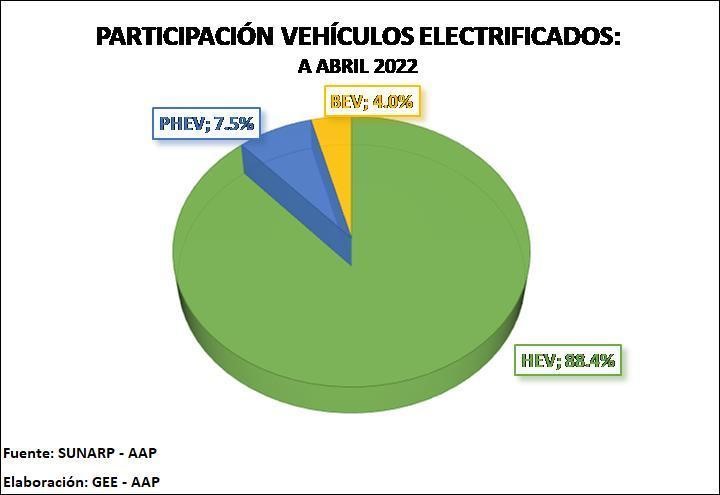 Para Morisaki es destacable que los vehículos eléctricos puros están ganando terreno en este mercado y que su porcentaje de participación va en aumento. Así, hasta abril de 2022 ya tienen el 4% del mercado, porcentaje mayor al observado en el 2021 (3.8%) y en el 2020 (2.1%).