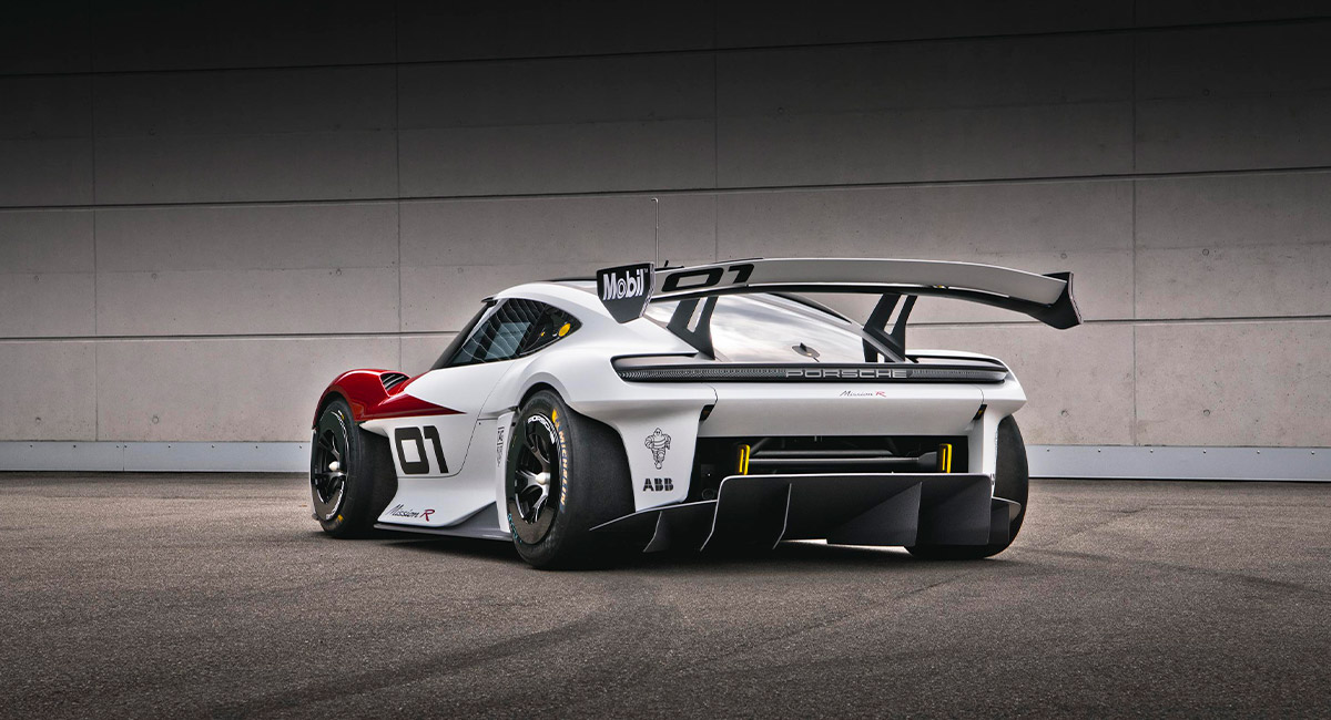 El prototipo con tracción en las cuatro ruedas entrega casi 1100 caballos de potencia en el ‘modo de clasificación’ y acelera de 0 a 100 km/h en menos de 2,5 segundos. Su velocidad máxima se sitúa por encima de 300 km/h. En circuito, este vehículo eléctrico logra hacer los mismos tiempos por vuelta que el Porsche 911 GT3 Cup actual. Gracias a los motores eléctricos y a las celdas de la batería de nuevo diseño, ambos equipados con un innovador sistema de refrigeración directa mediante aceite, el Porsche Mission R cuenta con una potencia constante de 680 CV (500 kW) en el ‘modo carrera’. Los avances técnicos han permitido eliminar la reducción de potencia de la batería debido a las condiciones térmicas. El motor eléctrico delantero rinde hasta 435 CV (320 kW), mientras el trasero puede alcanzar los 653 CV (480 kW). Gracias a la tecnología de 900 voltios y al sistema de carga Porsche Turbo Charging, apenas es necesaria una parada de 15 minutos durante la carrera para alimentar la batería desde el 5 hasta el 80 por ciento. La potencia máxima de carga es de 340 kW. En materia de aerodinámica, el Mission R incorpora una evolución del Porsche Active Aerodynamics (PAA) con Drag Reduction System (DRS) en la sección frontal y en el alerón trasero. Su parte delantera presenta dos tomas de aire laterales con tres lamas cada una, mientras que detrás lleva un alerón regulable dividido en dos secciones.