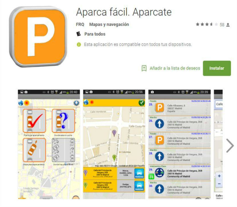Aparca fácil. Podrás encontrar estacionamientos con un ratio de 500 metros desde la posición donde esté el usuario. Disponible en Android.