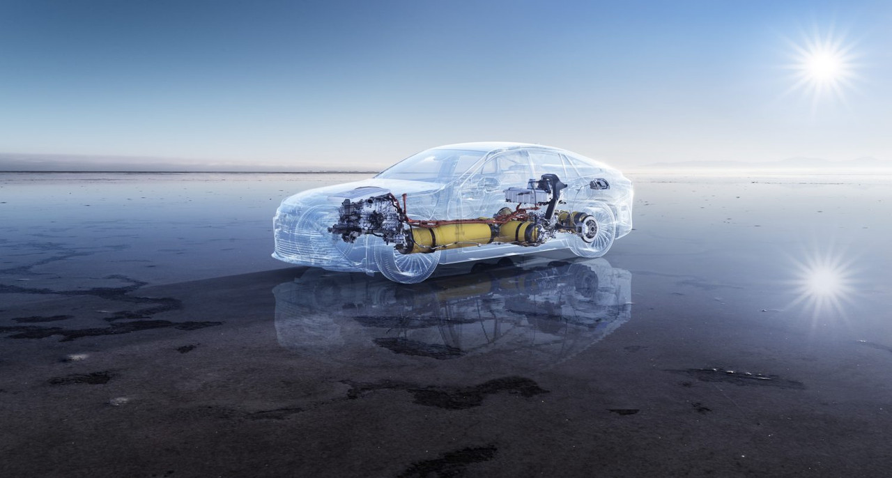 Un FCEV genera su propia electricidad a bordo a partir de hidrógeno con agua como única emisión. Un sistema de pila de combustible combina el hidrógeno almacenado con el oxígeno del aire y una reacción química que produce corriente eléctrica y agua, que cae por un tubo de ventilación oculto debajo del coche.